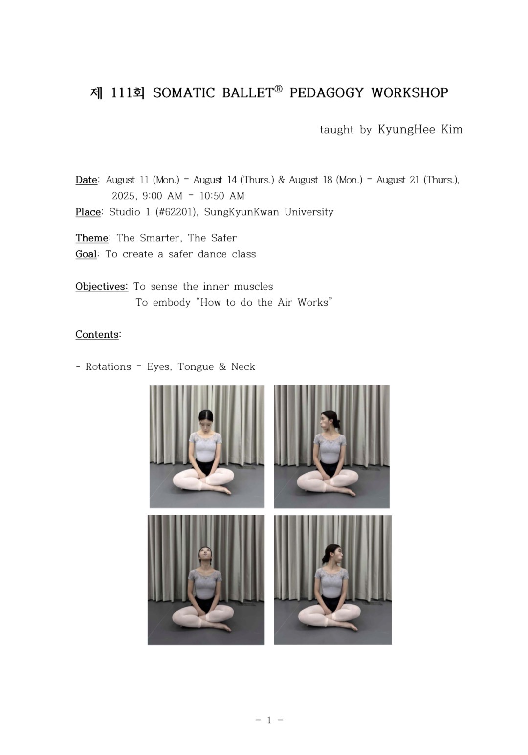 제 111회 SOMATIC BALLETⓇ PEDAGOGY WORKSHOP